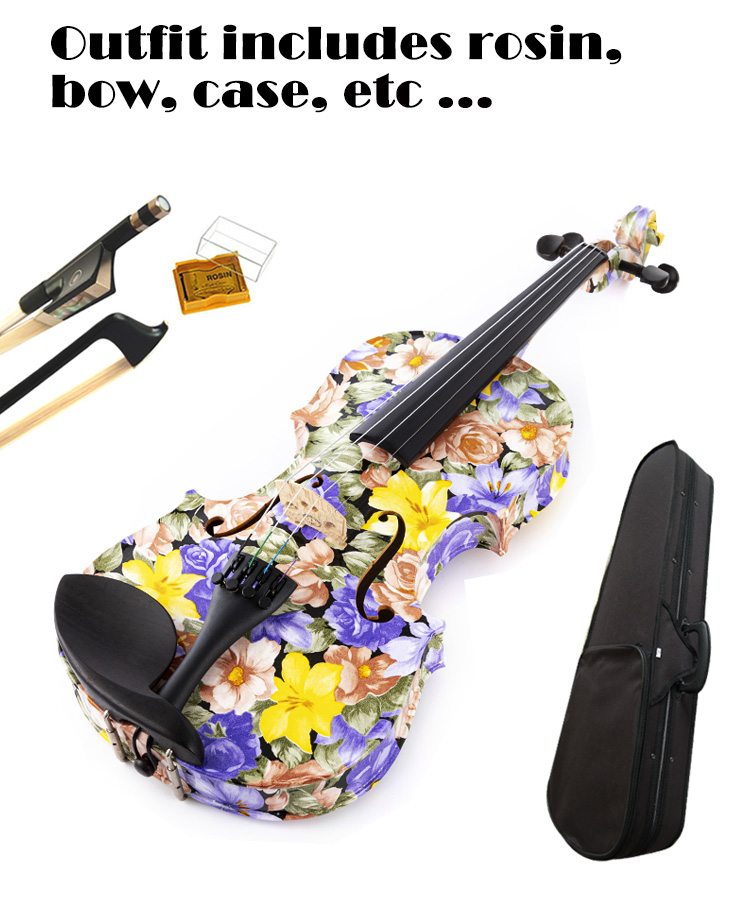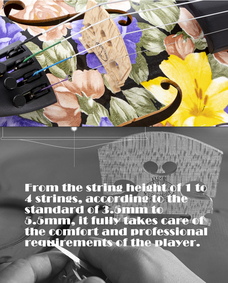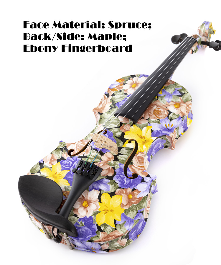 Kolorowy design sprawia, że te skrzypce są tak atrakcyjne. Pełne kwiatów na niej sprawią, że gracze poczują się, jakby znaleźli się w pięknym ogrodzie. Świerkowa powierzchnia zapewnia wysoką jakość dźwięku. Wysoki standard montażu; dostępna jest usługa OEM i ODM.