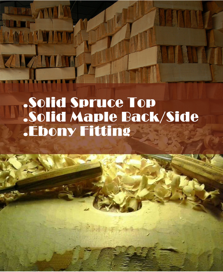 | Materiał tyłu/boku: | Klon | Materiał łuku | Drewno brazylijskie |