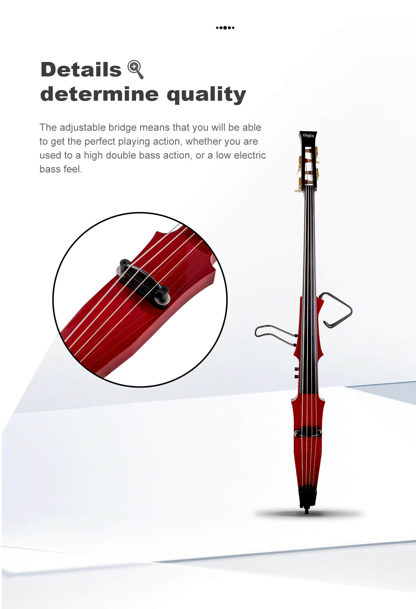 Te modele kontrabasów elektrycznych charakteryzują się nowoczesnym i stylowym wyglądem, dodając atrakcyjności wizualnej, która uzupełnia doskonałe brzmienie instrumentu i łatwość gry. Dzięki regulowanemu mostkowi, sworzniu i wspaniałym strojom zapewnia graczowi najbardziej komfortowe wrażenia z gry.