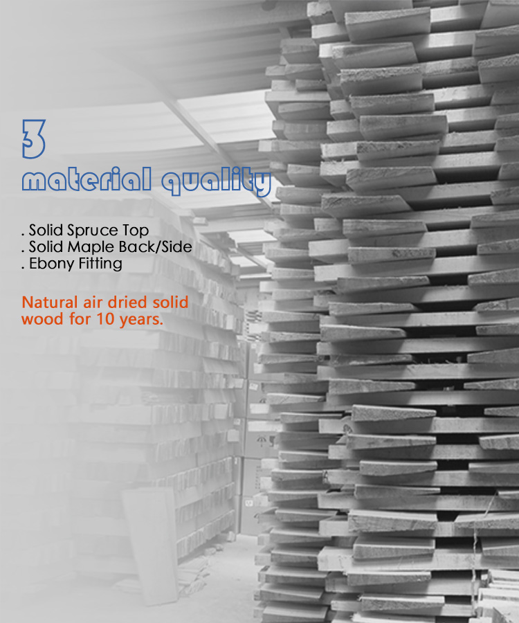 Mamy ścisły system kontroli jakości. Aby oferować klientom produkty wysokiej jakości, przywiązujemy dużą wagę do jakości, która wynika z profesjonalnej dbałości o szczegóły, począwszy od wyboru niedokończonych skrzypiec po procesy rzemieślnicze, malowanie i konfigurowanie. Wszystko to odbywa się na podstawa standardu zaawansowanych skrzypiec.