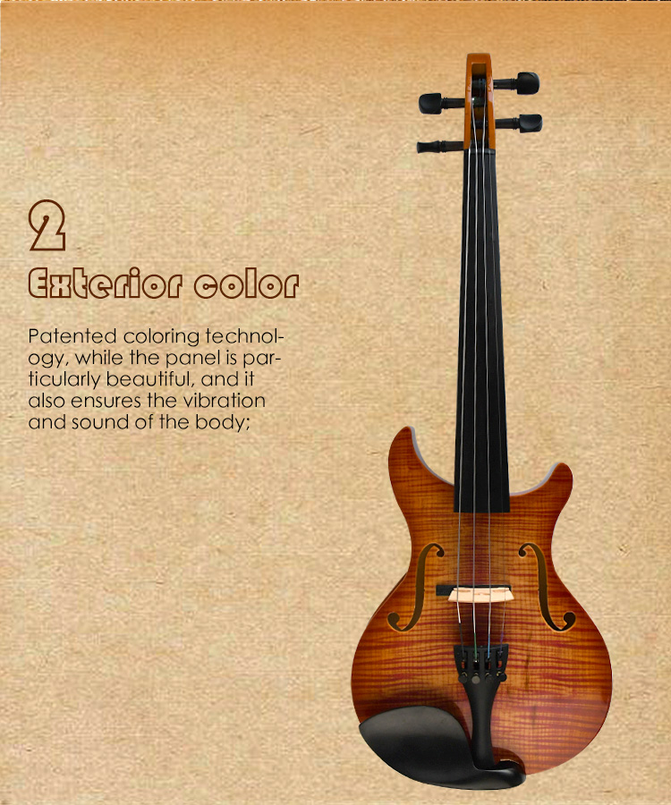1. Opatentowana technologia kolorowania, nadająca skrzypcom piękne kolory, zapewniając jednocześnie wysoką jakość dźwięku