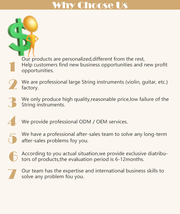 Wykorzystujemy nowe zaawansowane technologie do produkcji spersonalizowanych, estetycznych i modnych skrzypiec, altówek, wiolonczel, gitar, basów, ukulele i futerałów na rynek światowy. Możemy wykonać te instrumenty muzyczne według projektówi wymagania jakościowe stawiane przez klientów. Tymczasem zajmujemy się również produkcją tradycyjnych skrzypiec i gitarars i instrument muzyczny na skrzypce