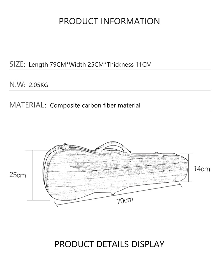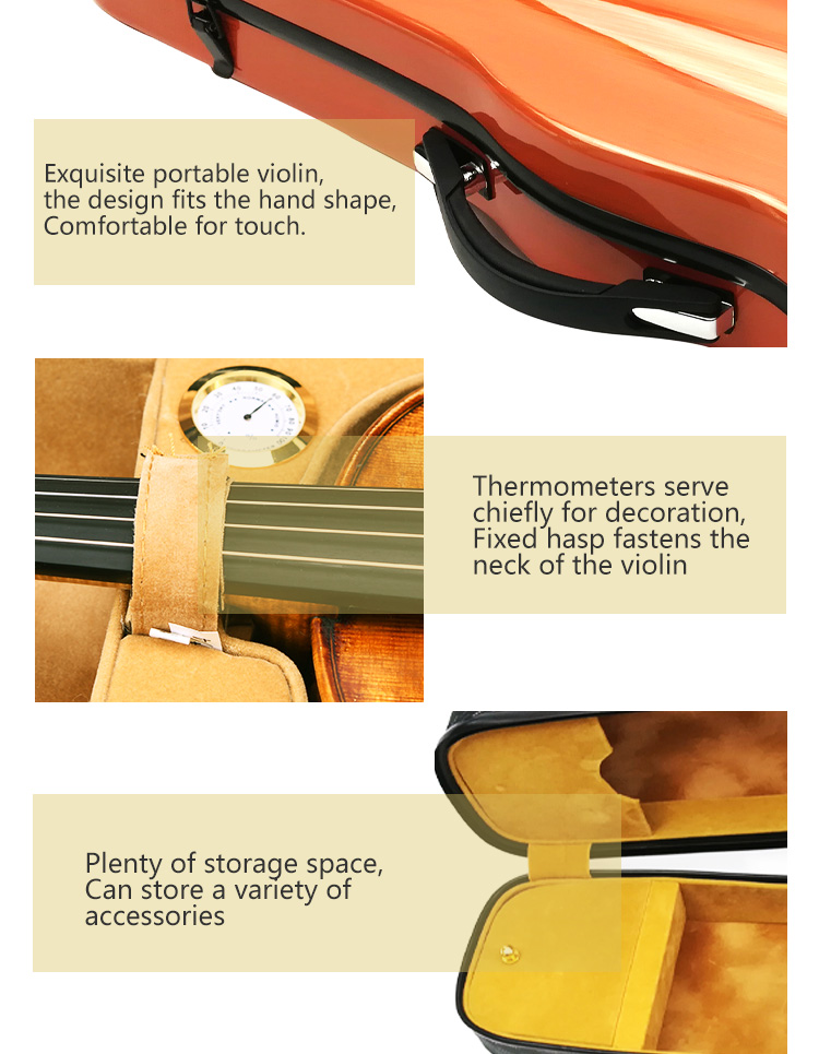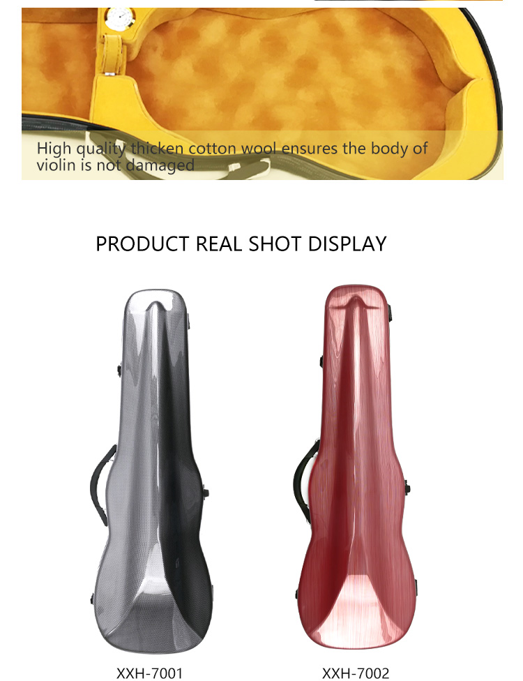 2, doskonała ochrona: materiał z włókna węglowego zapewnia wyjątkową odporność na wstrząsy, skutecznie amortyzując wstrząsy podczas transportu i podróży, zapewniając bezpieczeństwo korpusu skrzypiec i akcesoriów.