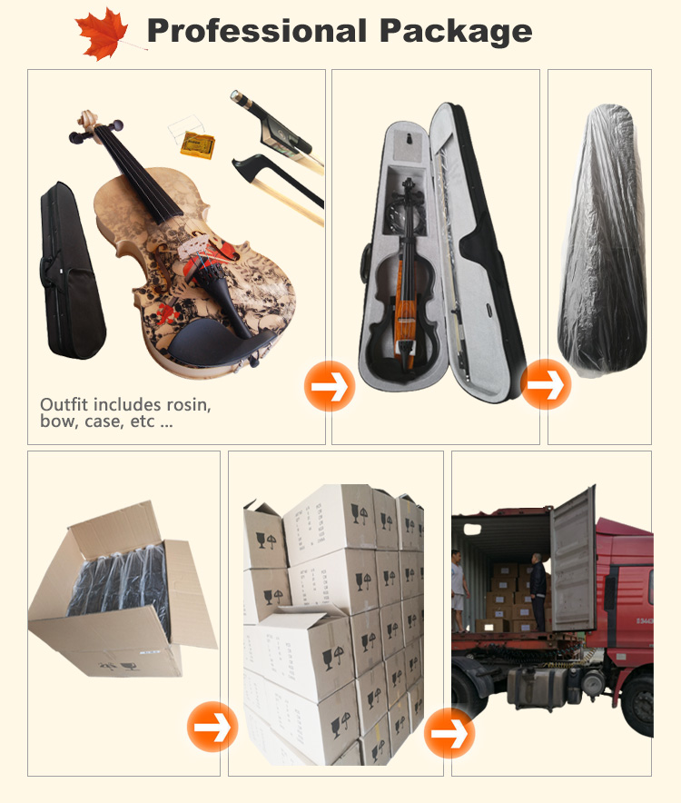 我们利用高新技术为全球市场生产个性化、美观、时尚的视觉艺术小提琴、中提琴、大提琴、吉他、贝斯、尤克里里和琴盒。我们可以根据客户提供的设计和质量要求生产这些乐器。同时,我们还生产艺术原声小提琴