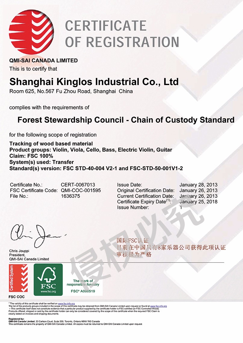 1.KINGLOS独家“专利调色技术”,50多项专利保护,让您的小提琴独一无二,保证音色品质。